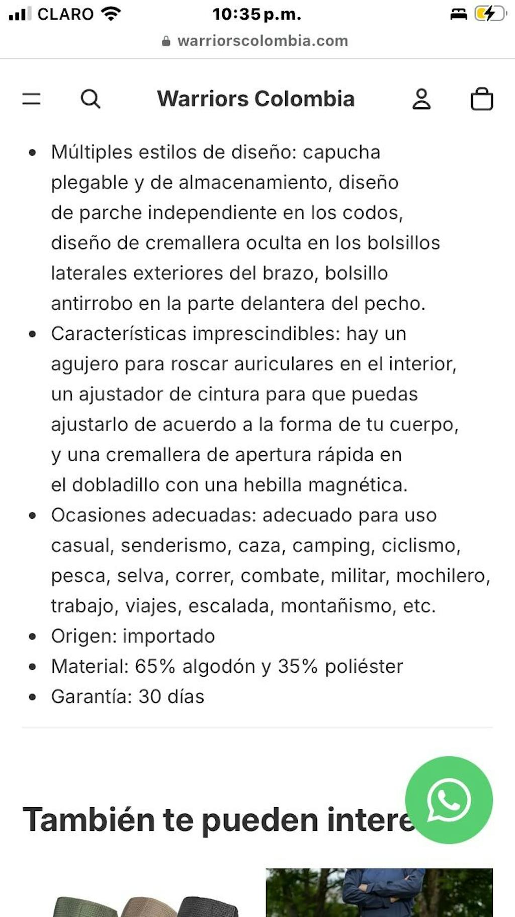 - Ocasiones adecuadas: adecuado para uso casual, senderismo, caza, camping, ciclismo, pesca, selva, correr, combate, militar, mochilero, trabajo, viajes, escalada, montañismo, etc.